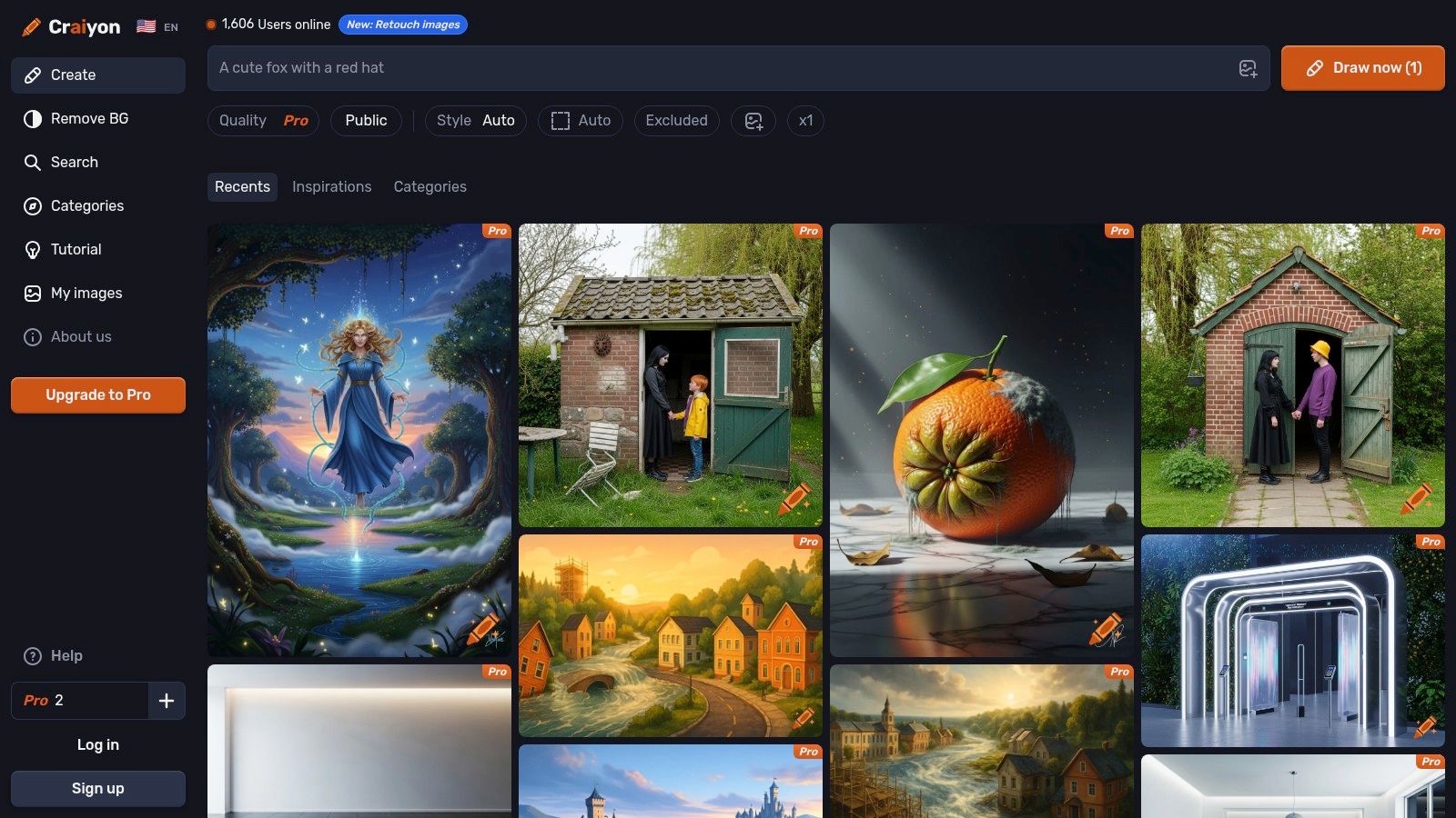 - Workflow: Enter a text prompt and choose a style like Art, Photo, or Drawing. The AI generates a 3x3 grid of images. Paid tiers offer faster generation, higher quality, and remove watermarks.