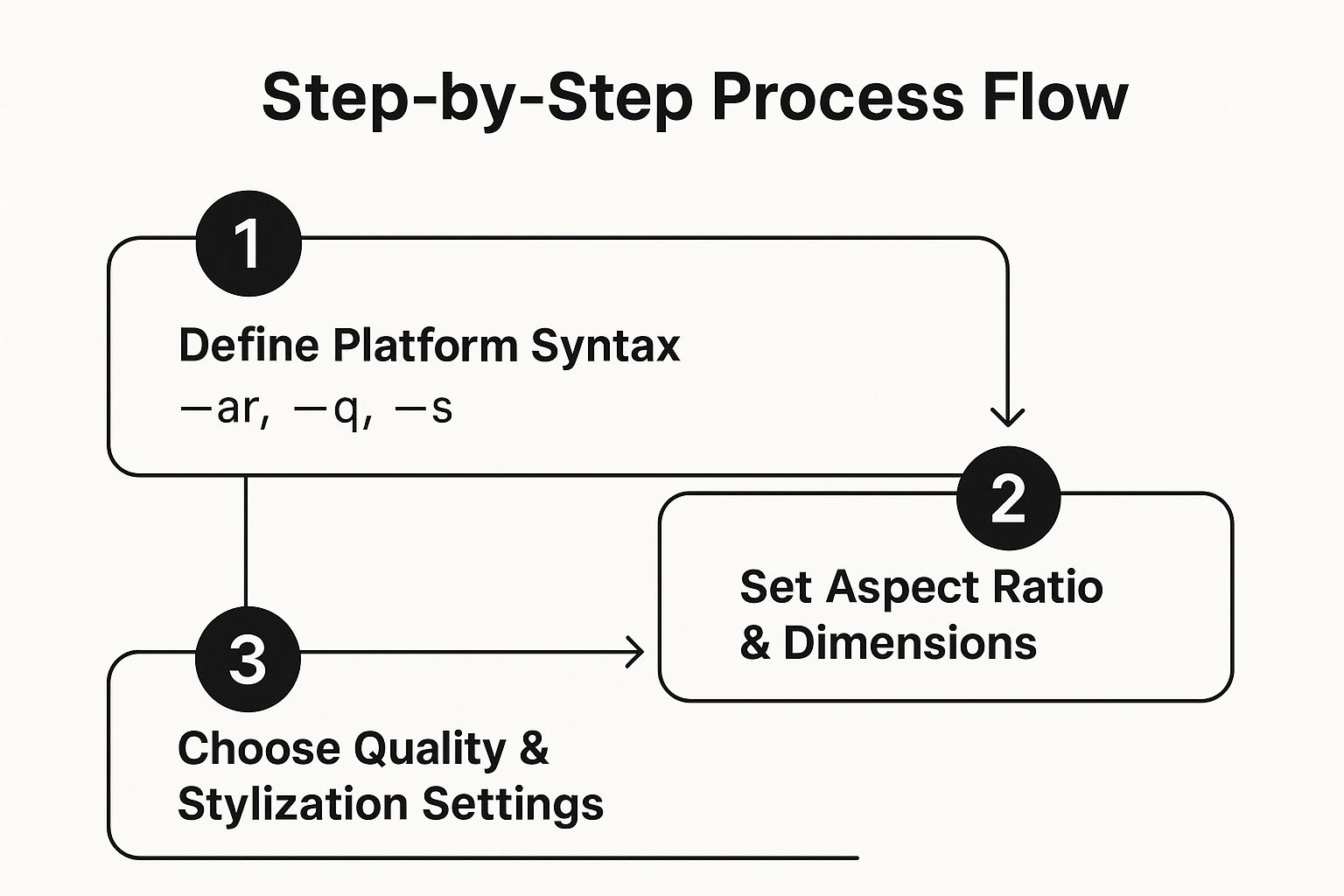 --ar): Control the image dimensions directly. For example,--ar 16:9for widescreen,--ar 1:1for a square, or--ar 2:3for a vertical portrait. - Quality (