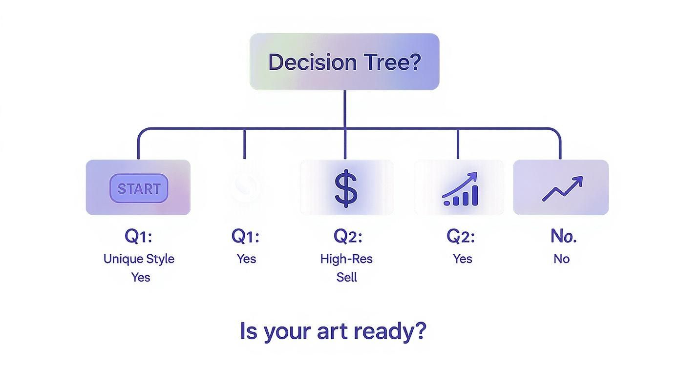 Before you jump in, it's worth taking a quick self-assessment. Does your art have a distinct, recognizable style? Is it high-resolution and ready for printing?