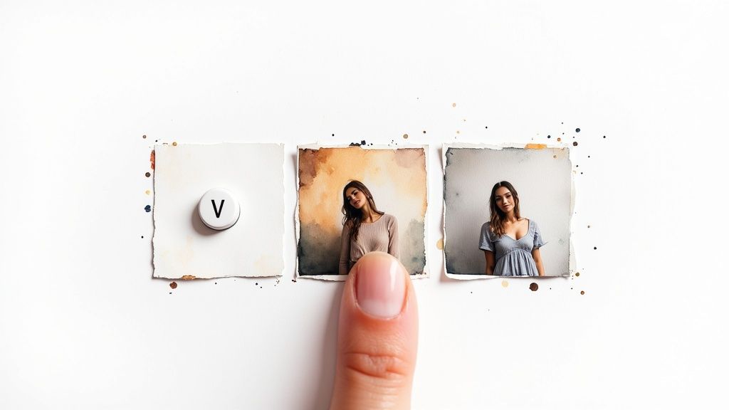A truly great image rarely just happens on the first try. Think of the first four-image grid Midjourney gives you not as the destination, but as the starting point. This is where the real work—and the real fun—begins. Mastering this tool means learning how to refine, taking a promising concept and patiently iterating on it until it becomes a polished masterpiece. You're shifting from just typing a prompt to actively directing the AI toward your vision.