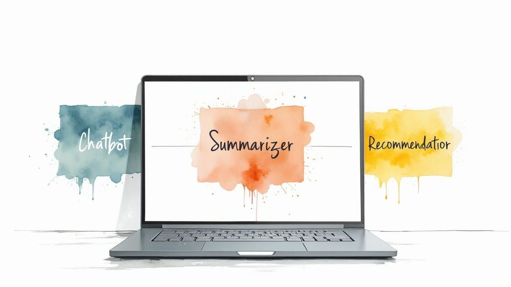 Consulting is another powerful route. Many businesses are struggling to figure out how to integrate generative AI effectively, and your skills can help them build efficient systems from the ground up. If you're looking for some direct, no-fluff ideas to get started, our article on how to make money with AI offers a practical guide and lays out some actionable steps.