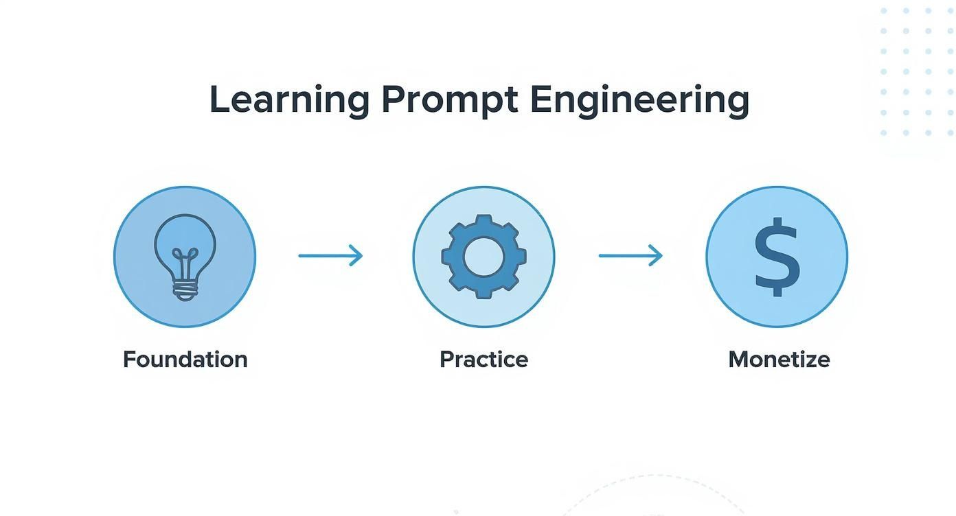 Your journey into prompt engineering will follow a pretty clear path. You'll start with the basics, move into hands-on practice, and eventually, you can even start earning from your new skills.