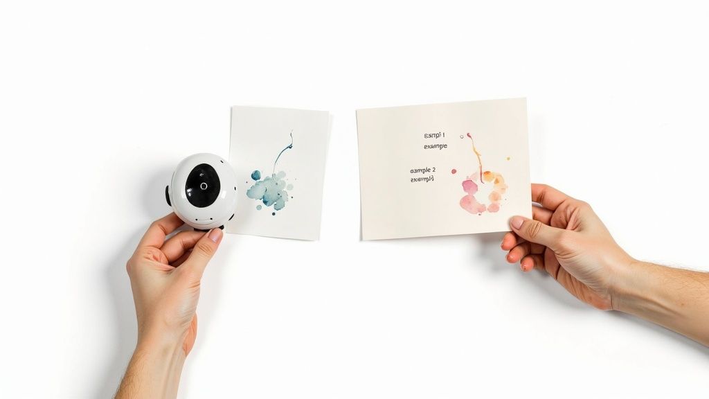 By showing the model these examples, you're essentially teaching it the exact pattern you want it to follow. This trick dramatically improves accuracy for things like classification, formatting, or getting the tone just right. You can dive deeper into this powerful method by mastering Few-Shot prompting for better AI results.