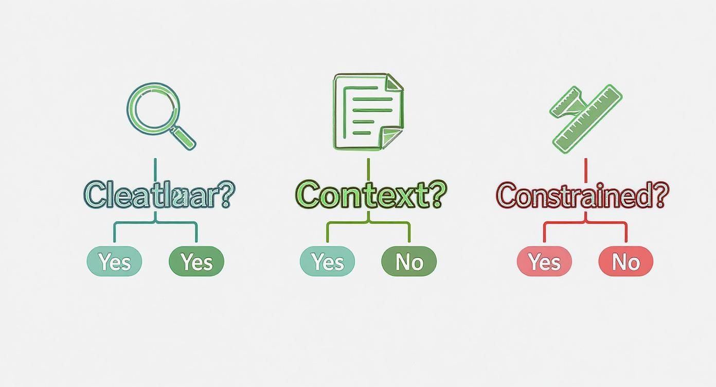 This little decision tree shows how layering in more detail—like context and constraints—is a systematic way to improve your odds of getting a great response from the AI.