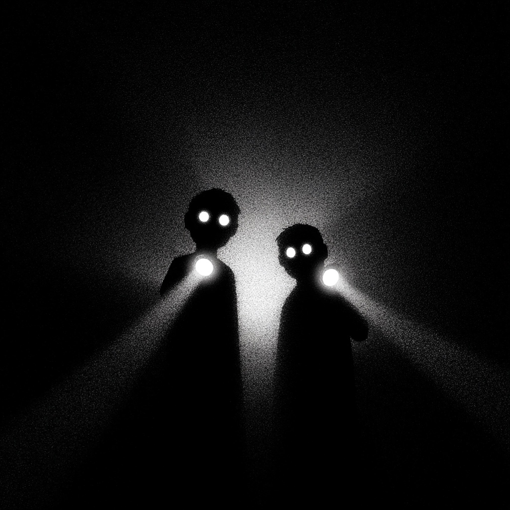In the shadows of nostalgia, two figures emerge, their bright eyes cutting through the darkness, drawing us into an adventure that feels both familiar and mysterious.